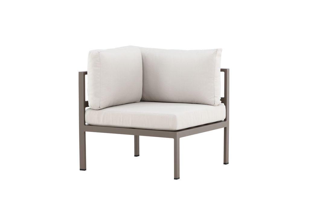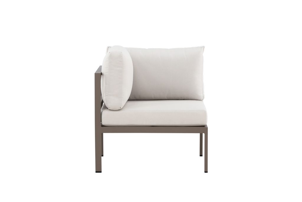 Skapa din perfekta loungemöbel med Copacabana soffmodul, hörndel. Denna stilfulla modul i en elegant brun färg är både praktisk och estetiskt tilltalande. Ramen är tillverkad av hållbar aluminium, vilket gör den lätt och robust – perfekt för utomhusbruk. Dynorna är klädda i olefin, ett slitstarkt och väderbeständigt tyg i matchande beige nyans, för extra komfort och en harmonisk look. Kombinera Copacabana hörndelen med andra moduler från serien för att skapa en loungegrupp som passar just din uteplats. Elegant, hållbart och designat för att njuta av utomhuslivet med stil.