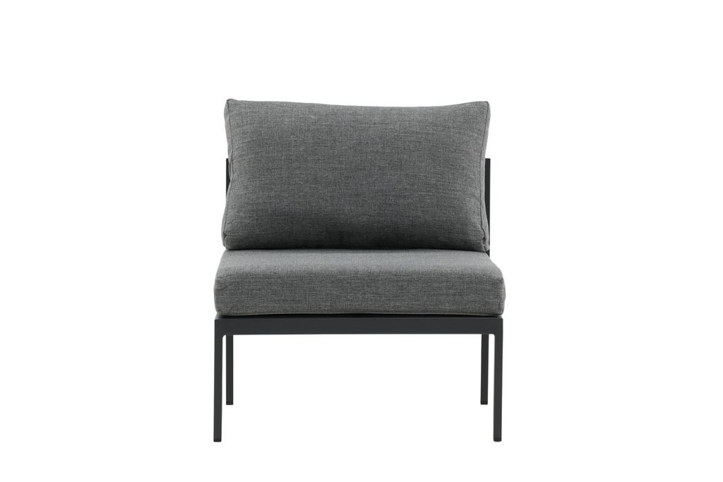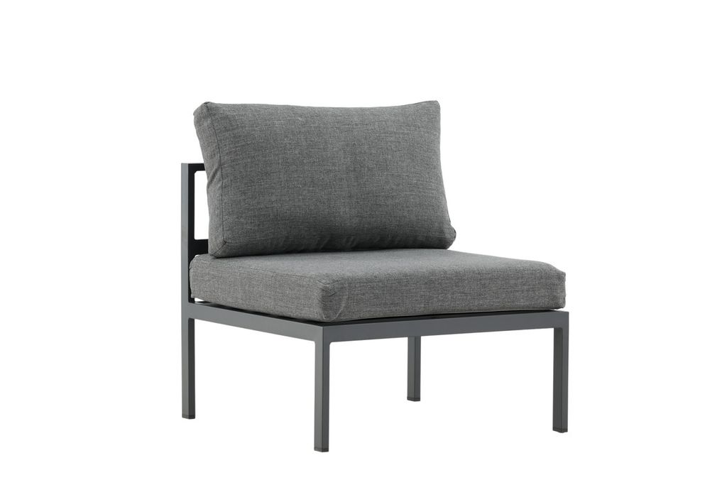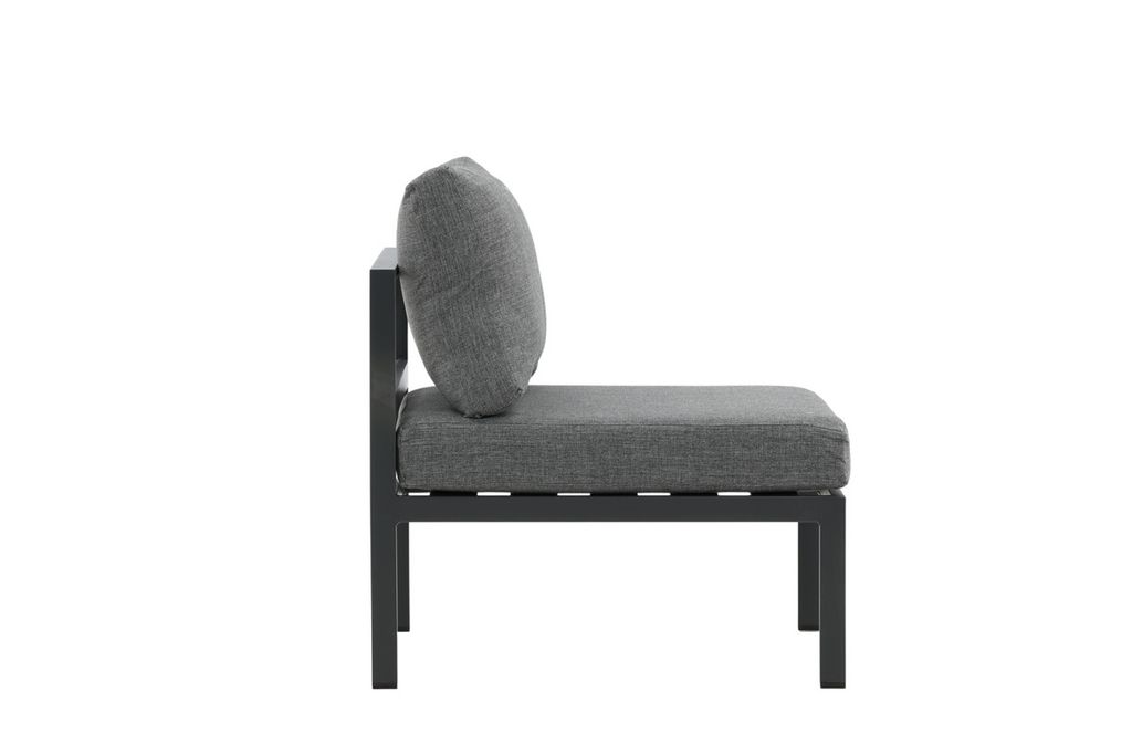 Med portabla moduler kan du anpassa och bygga loungegruppen du alltid drömt om! Den här mittdelen tillhör serien Copacabana och är i svart aluminium med mjuka grå dynor för extra komfort. Med hjälp av den här modulen kan du skräddarsy din soffgrupp efter smak och utrymme. Anpassa efter just din uteplats, förläng soffan eller gör det till något alldeles unikt!