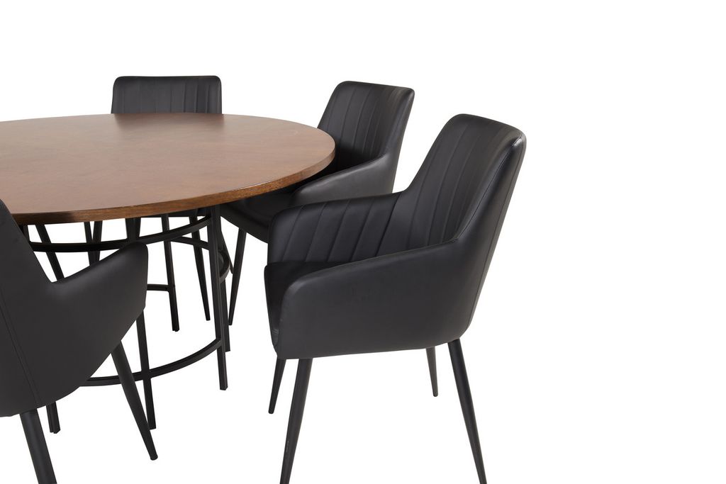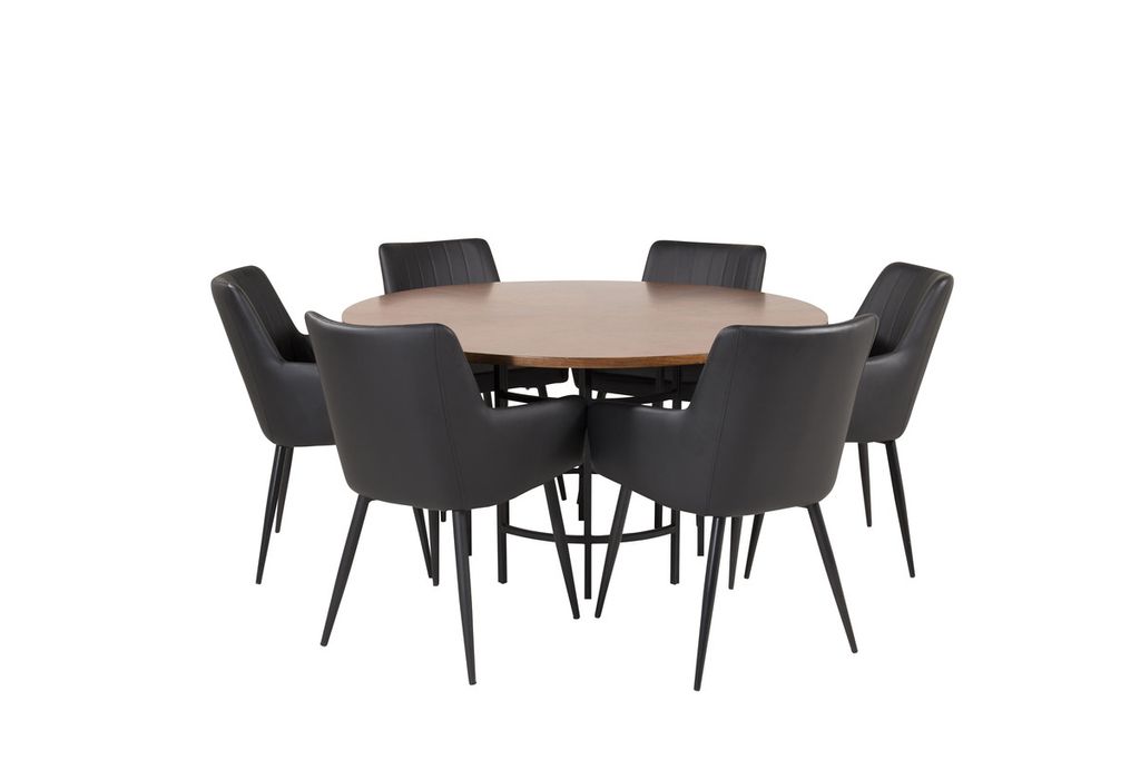 Venture Home Copenhagen & Comfort Runt Matbord ⌀140 Brun + 6 st Matstolar Svart