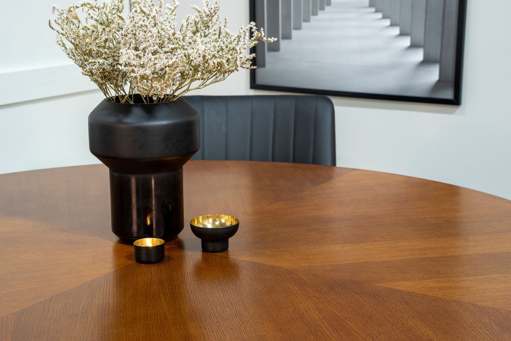 Bordet Copenhagen är en sann skönhet med en rund form och en imponerande diameter på 140 cm. Den bruna bordsskivan ger en varm och inbjudande känsla, medan den svarta stommen ger en modern touch. Kombinationen av färger och material skapar en harmonisk helhet som passar perfekt in i de flesta inredningsstilar.