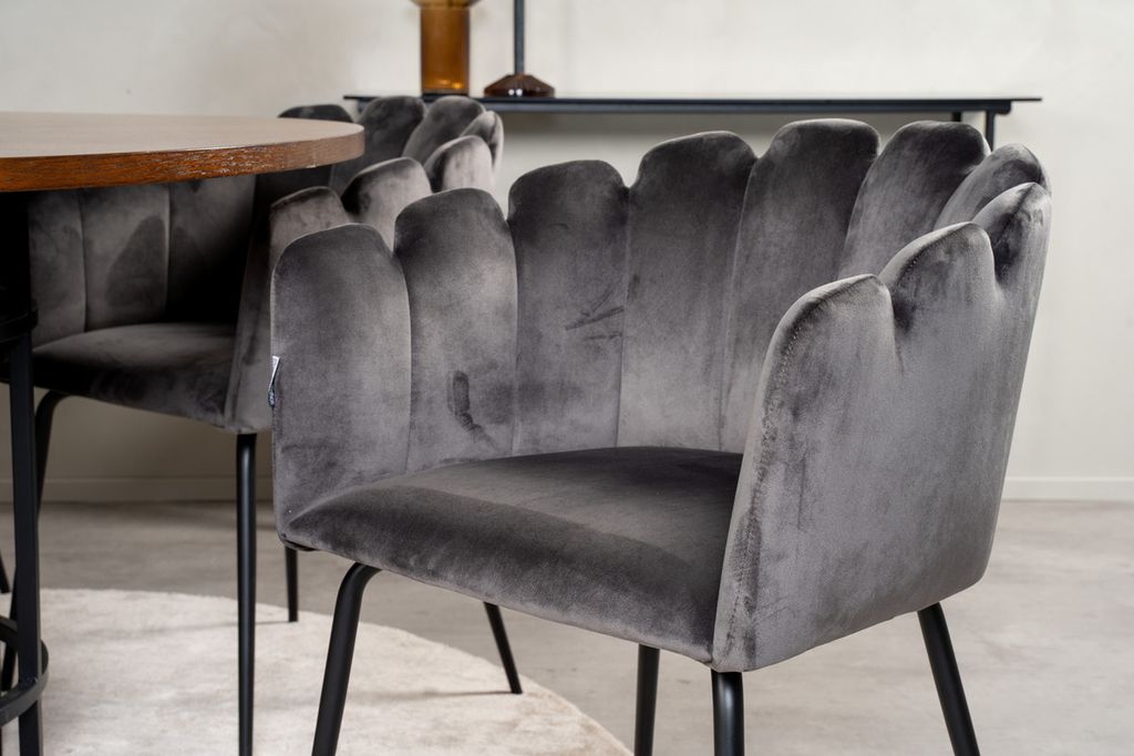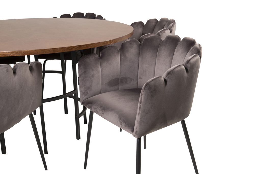 Rund matgrupp med härlig aura från kollektionen Furniture Fashion. Här blandas material och färger till en fantastisk kombination. Bord Copenhagen tillsammans med matstolar Limhamn.