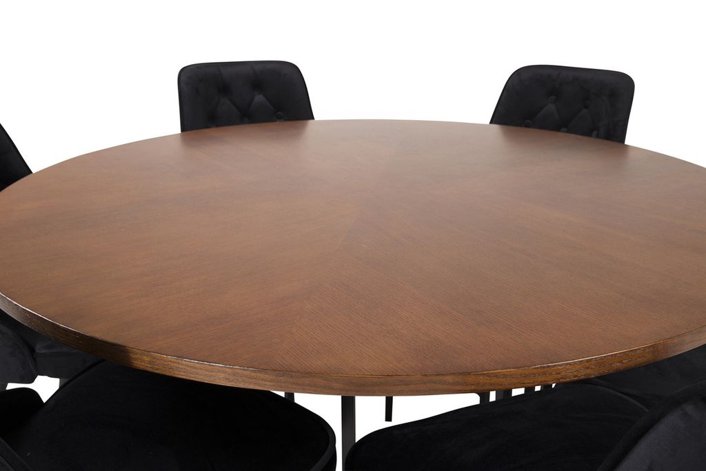 Venture Home Copenhagen & Velvet Deluxe Runt Matbord ⌀140 Brun + 6 st Matstolar Svart