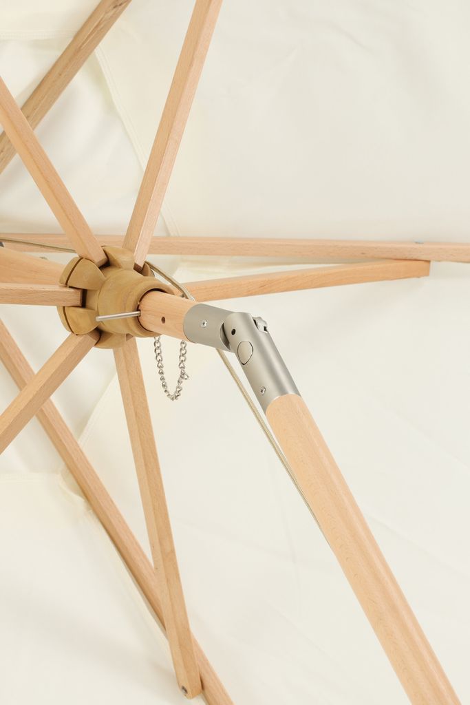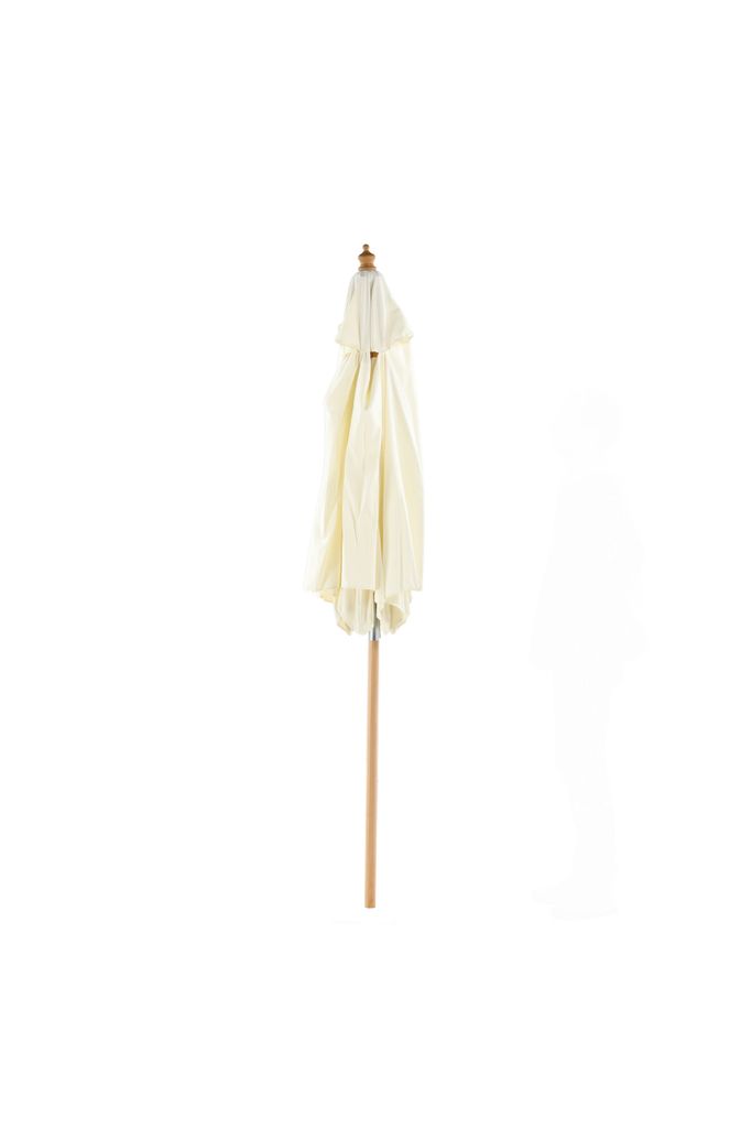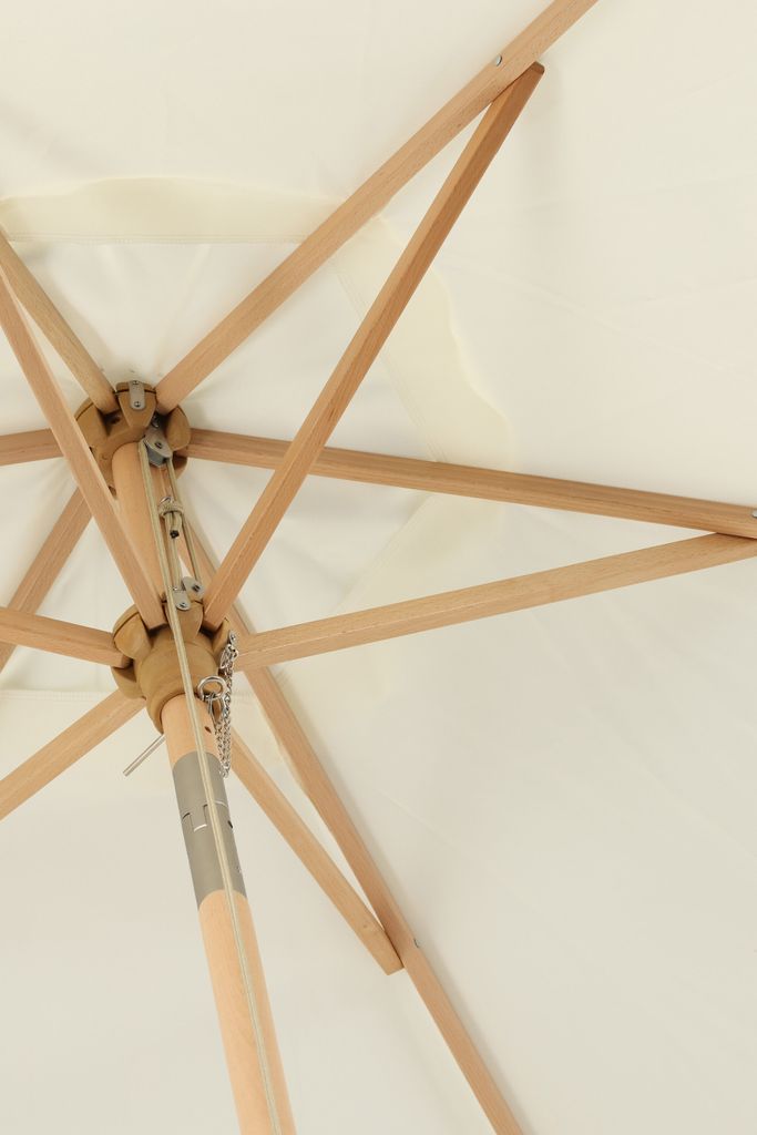 Parasollets konstruktion är robust med en kombination av bokträ och polyester. Den naturliga träfinishen ger en elegant touch och säkerställer hållbarhet. Enkel att använda utan behov av montering, är detta parasoll både praktiskt och stilfullt.
