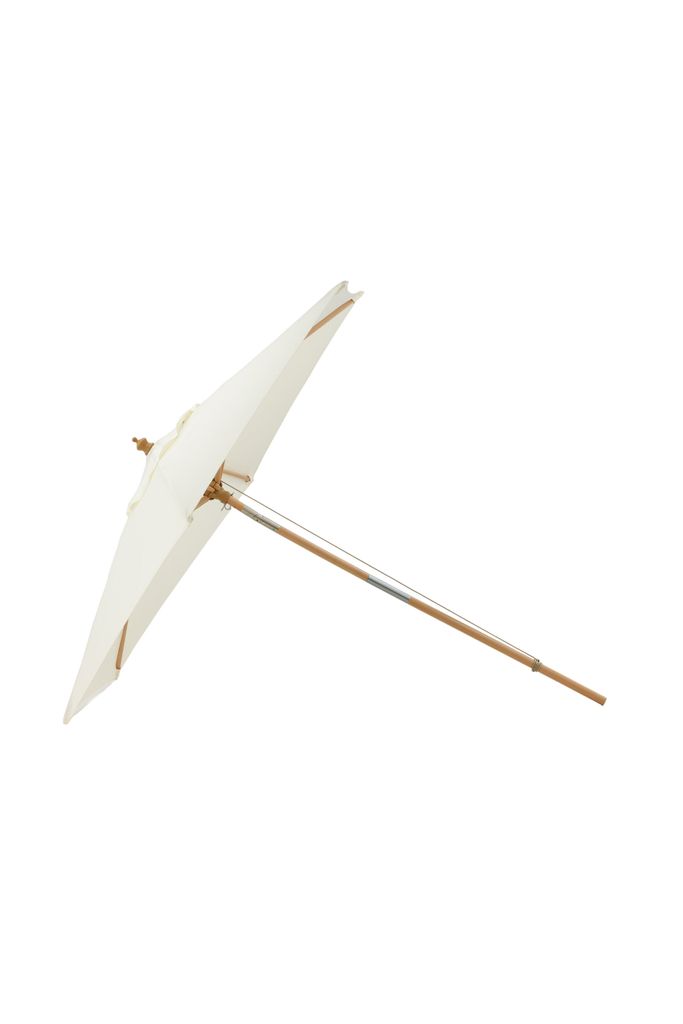 Stilrent vitt parasoll med justerbar lutning. Perfekt för soliga uteplatser.