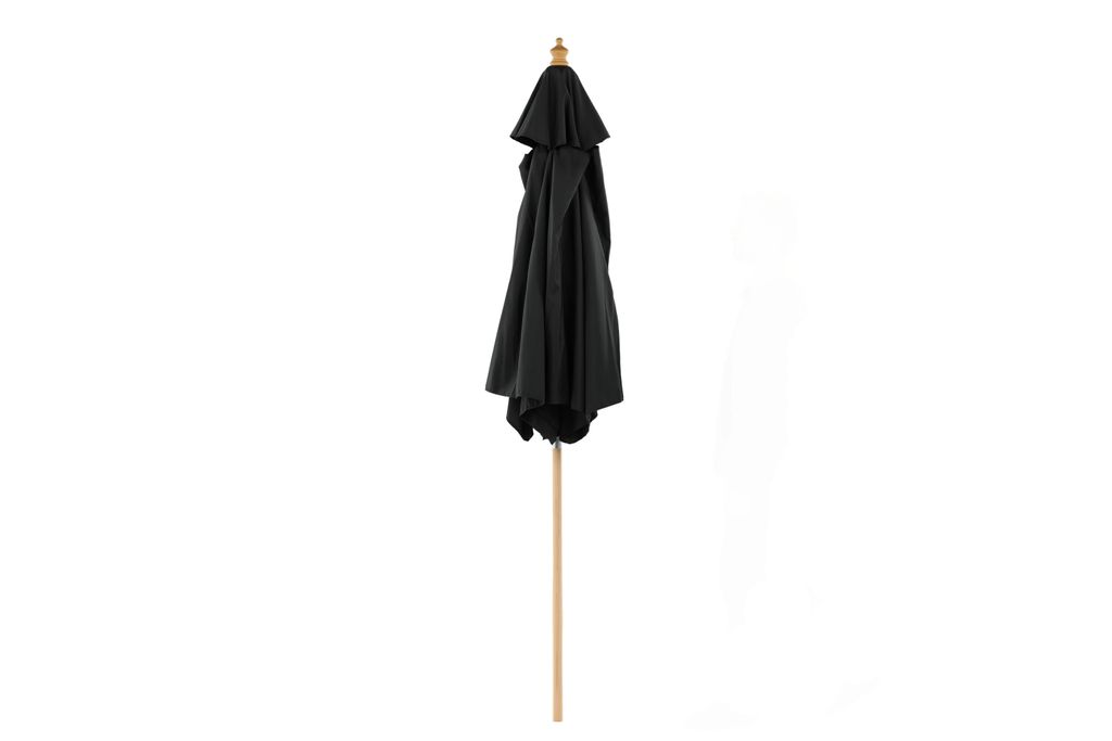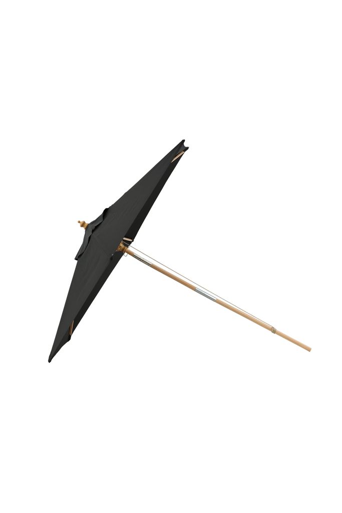 Corypho parasoll med svart tyg och lutningsfunktion. Perfekt för skuggiga stunder på uteplatsen.