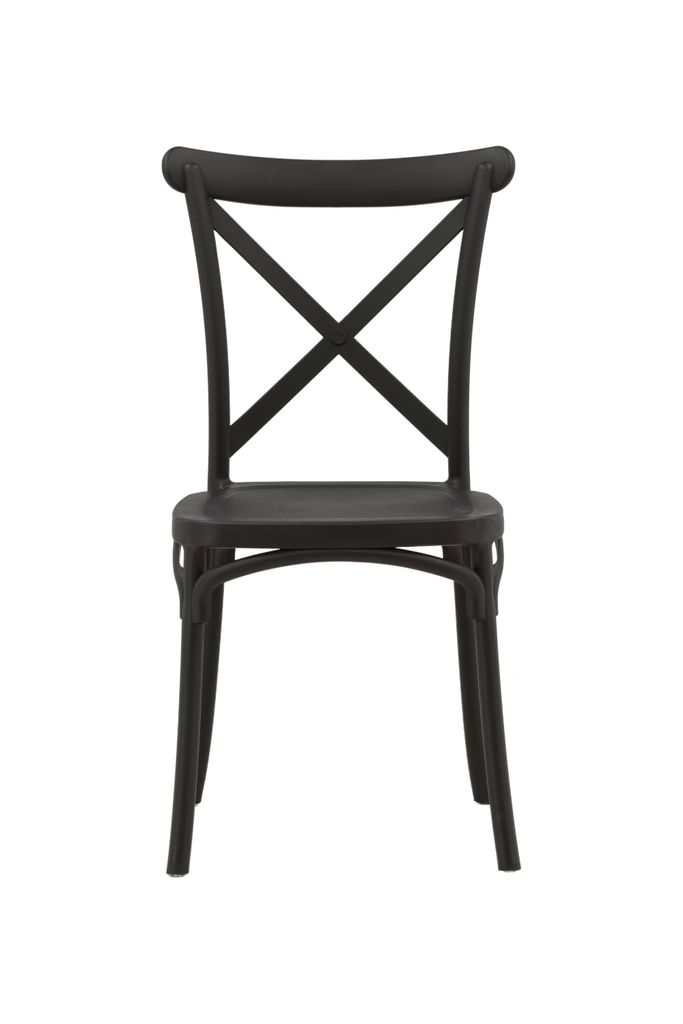 Elegant och hållbar matstol i svart plast. Kombinerar klassisk design med modern estetik för en stilren matplats.