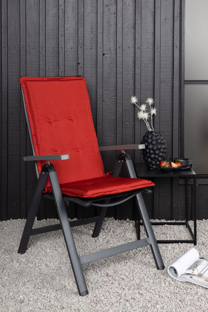 Njut av extra komfort med dessa röda stolsdynor, perfekta för fällbara stolar på uteplatsen.