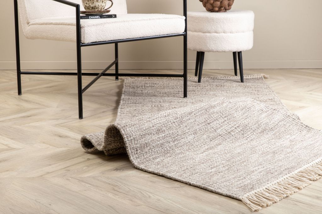 Skapa en modern och trivsam atmosfär med en stilren, handvävd ullmatta i jordnära kulörer.