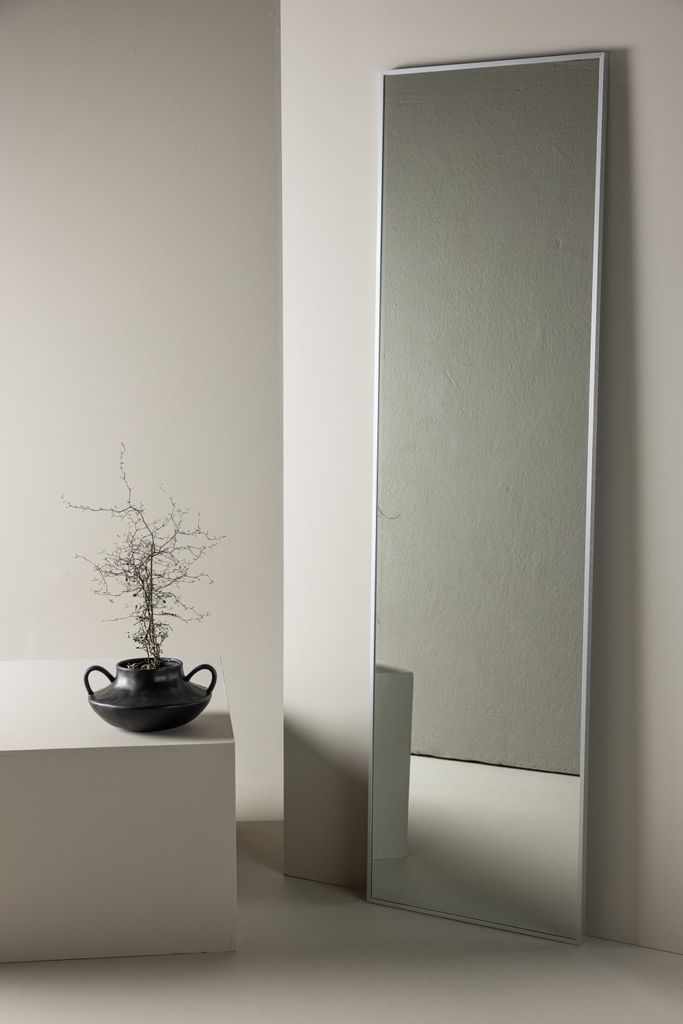 Dalton spegelns stora yta mäter 220 cm i höjd och 67 cm i bredd, vilket gör den perfekt för både sovrum och hallar. Den tunna ramen bidrar till dess moderna estetik, och den silverfärgade finishen gör den till en stilren detalj i olika inredningsstilar. Placera den i sovrummet för en lyxig atmosfär eller i hallen för en perfekt sista koll på din outfit.