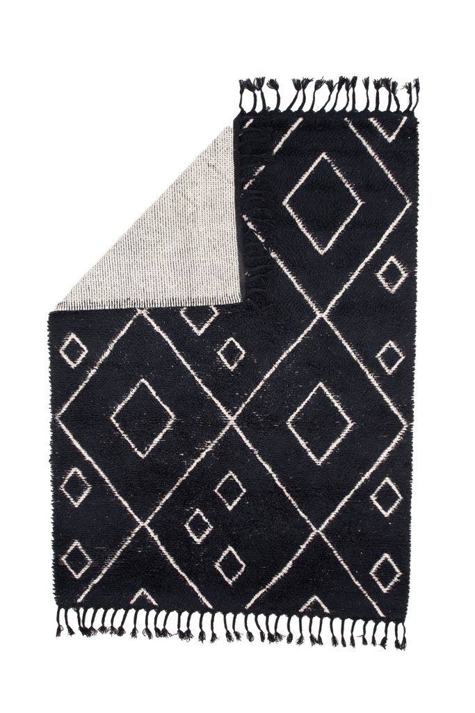 Trendsäker ullmatta i svart och vit med lyxigt rutmönster. Perfekt för ett sofistikerat intryck i ditt hem.