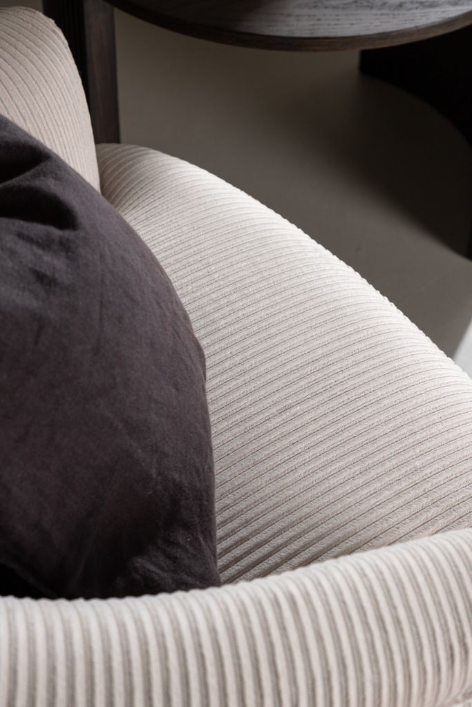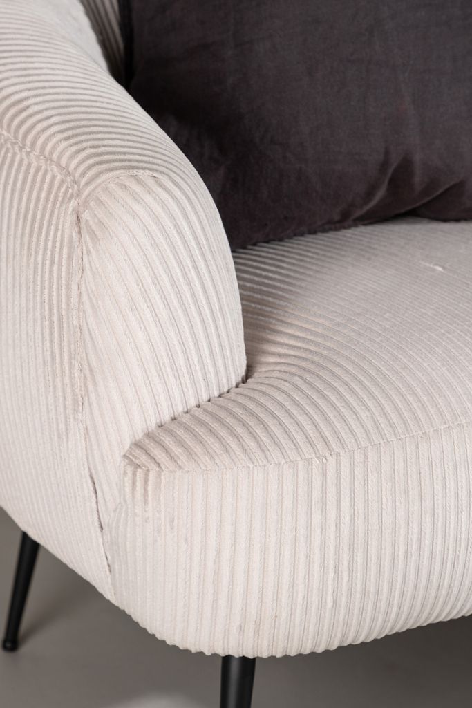 Upptäck Venture Home Derry Fåtölj, där modern design möter 50-tals nostalgi. Denna eleganta fåtölj är klädd i lent ljust beige manchestertyg som ger den ett härligt lyster. Med sin böjda och mjuka design, smala höga ben och generösa sittdjup skapar fåtöljen en luftig och inbjudande känsla. Med den klädda baksidan kan fåtöljen placeras mitt i rummet, vilket gör den till en perfekt stilikon oavsett placering.