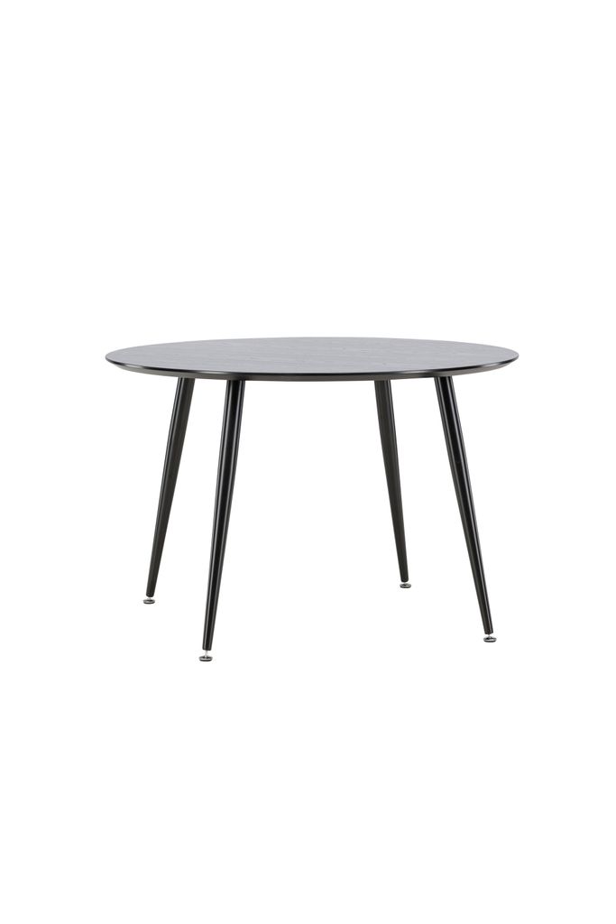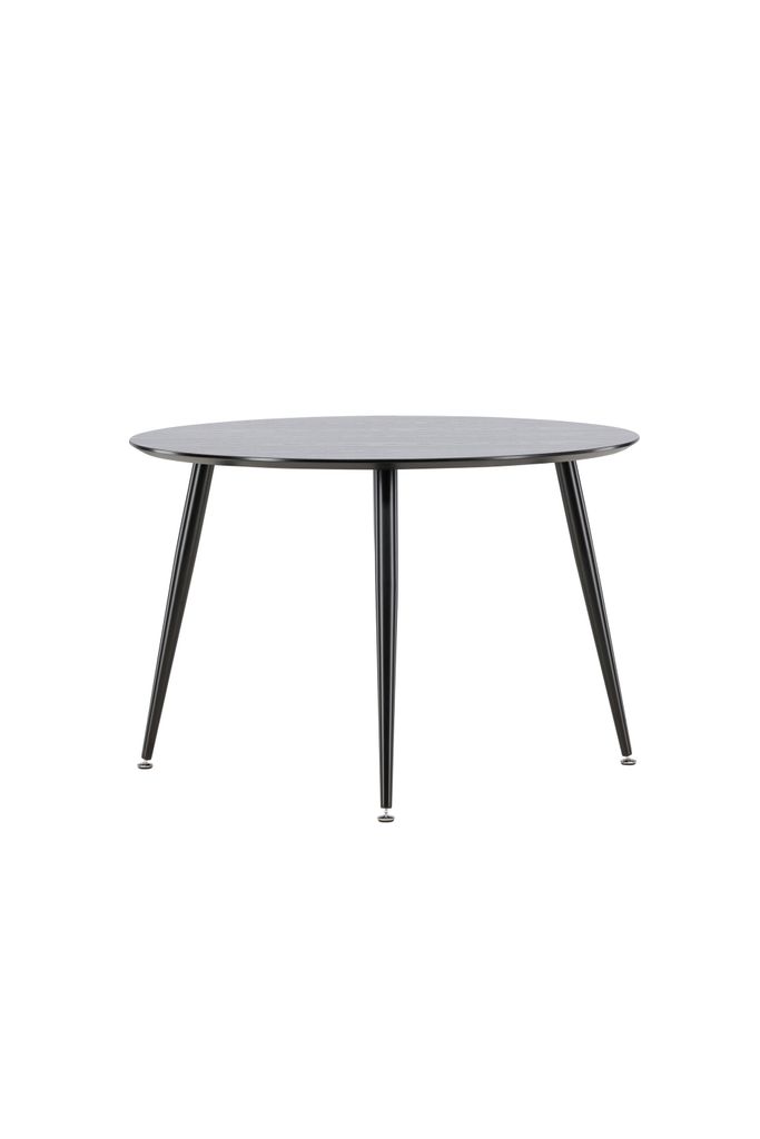 Skapa en charmig mittpunkt i ditt hem med vårt eleganta Venture Home Dipp runt matbord. Bordet har en stilren bordsskiva i svart MDF som ger en sofistikerad känsla. De lätt utsvängda metallbenen ger både stabilitet och modern design.