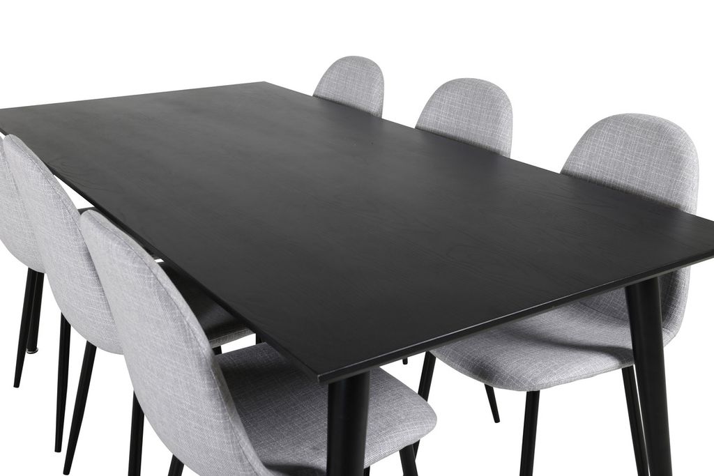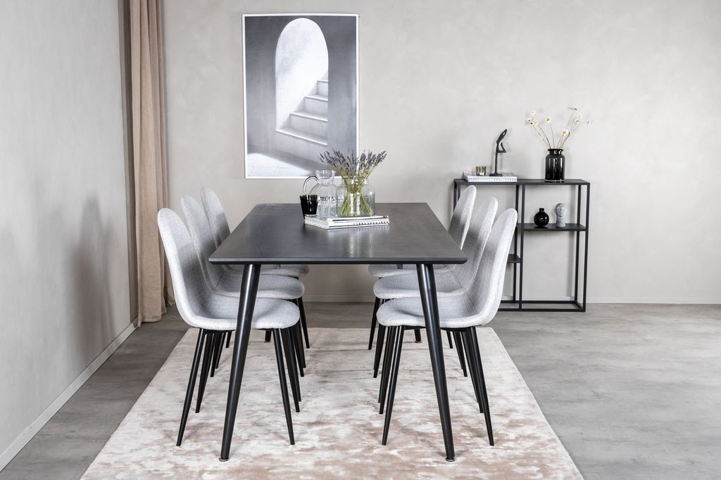 Venture Home Dipp & Polar Rektangulärt Matbord 180 x 90 Svart + 6 st Matstolar Grå