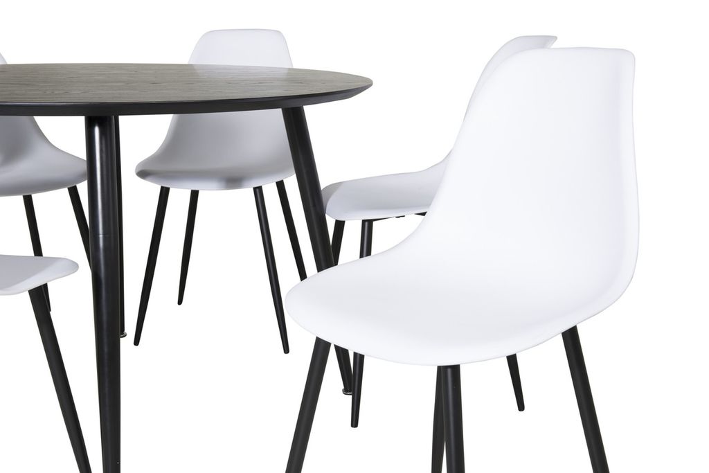 Venture Home Dipp & Polar Runt Matbord ⌀115 Svart + 6 st Matstolar Vit