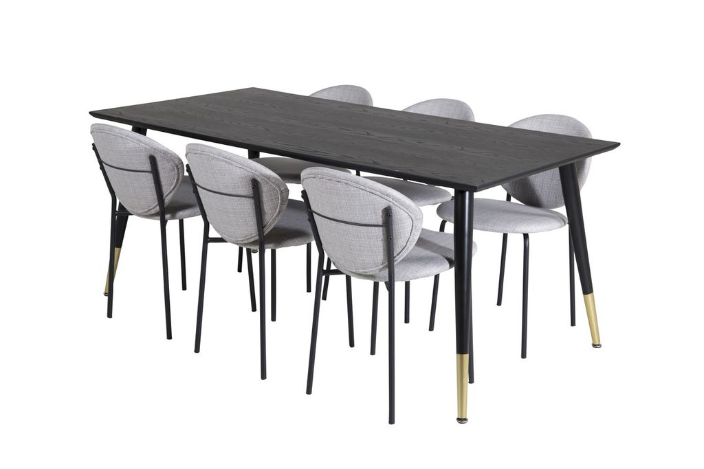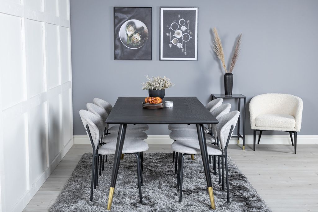 Klassisk matgrupp som passar i de flesta hushåll! Matbord Dipp med sina lyxiga guldetaljer tillsammans med grå stolar i serien Vault är som gjort för dig som vill skapa en ombonad och modern känsla i hemmet.