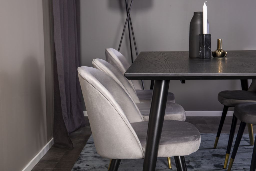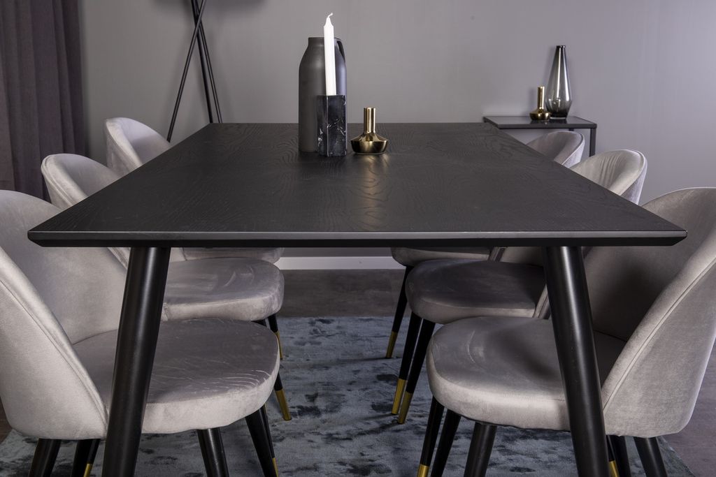 Venture Home Dipp & Velvet Rektangulärt Matbord 180 x 90 Svart + 6 st Matstolar Grå
