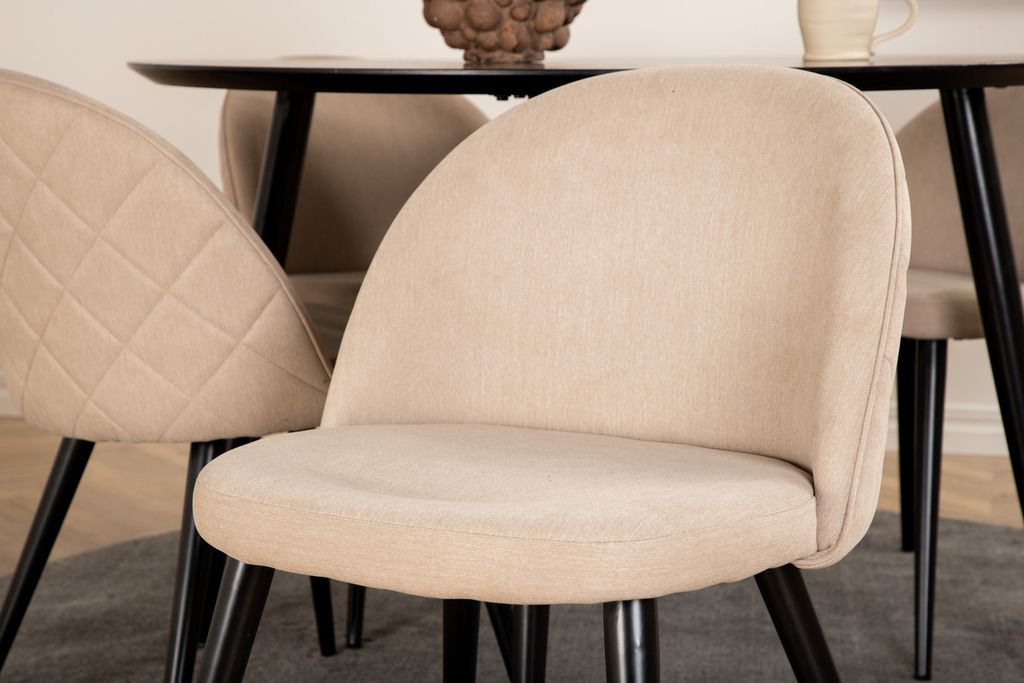 Venture Home Dipp & Velvet Runt Matbord ⌀115 Svart + 4 st Matstolar Beige