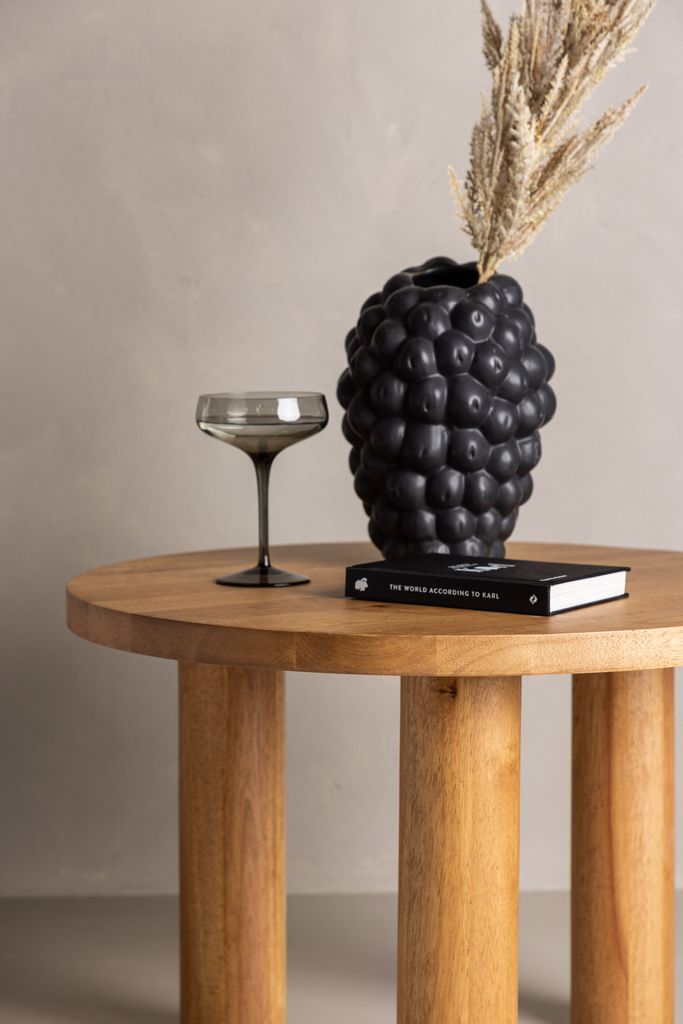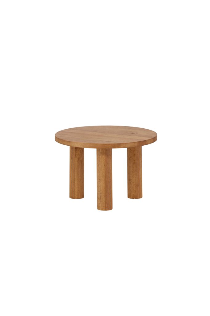 Stilrent och nätt soffbord i ekfärgat gummiträ med rund toppskiva och cylinderformade ben.