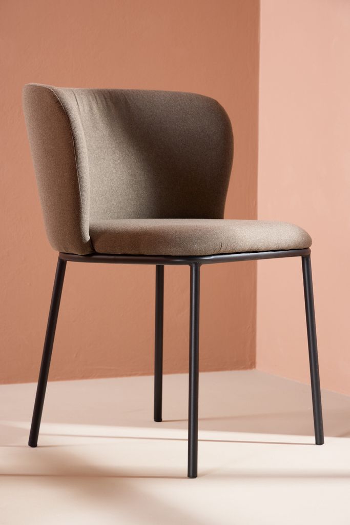Eleganta Edina matstolar med brun linnesits och svart stålram. Perfekt för stil och komfort.