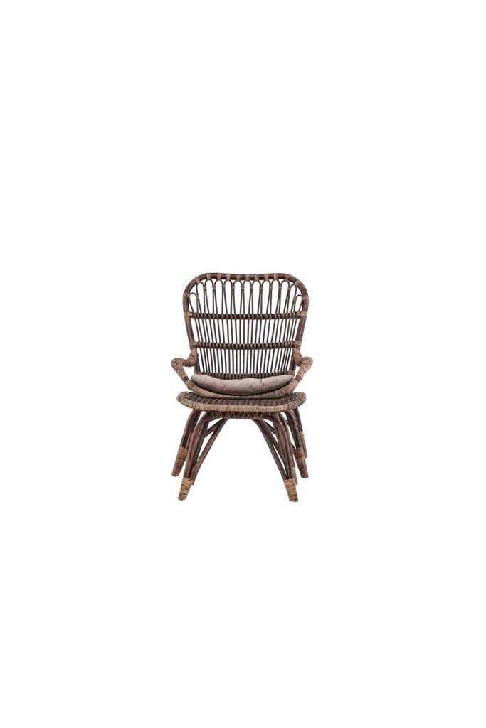 Den matchande fotpallen tillsammans med de mjuka, beige dynorna skapar en harmonisk kontrast och erbjuder hög komfort. Loungestolens konstruktion i bambu och rotting säkerställer hållbarhet och ett tidlöst utseende. Placera Ella i ett ljust uterum eller på en täckt altan för att skapa en känsla av lugn och lyx.