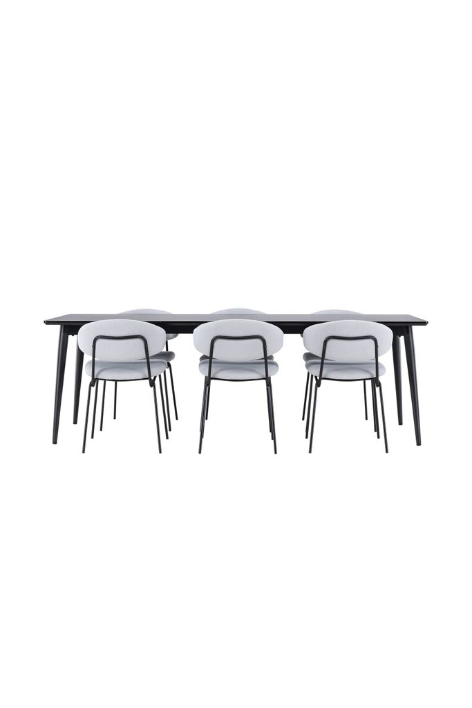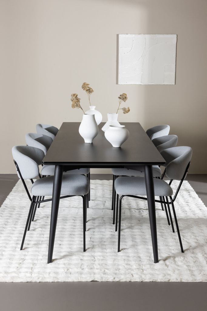 Ellis-matbordet är navet i din matsalsmiljö med sin moderna svarta design. Bordet har eleganta stålben och en bordsskiva i MDF-material, vilket ger en fantastisk balans mellan robusthet och stil. Med måtten 230x85 cm är det perfekt för både familjemiddagar och större sammankomster.