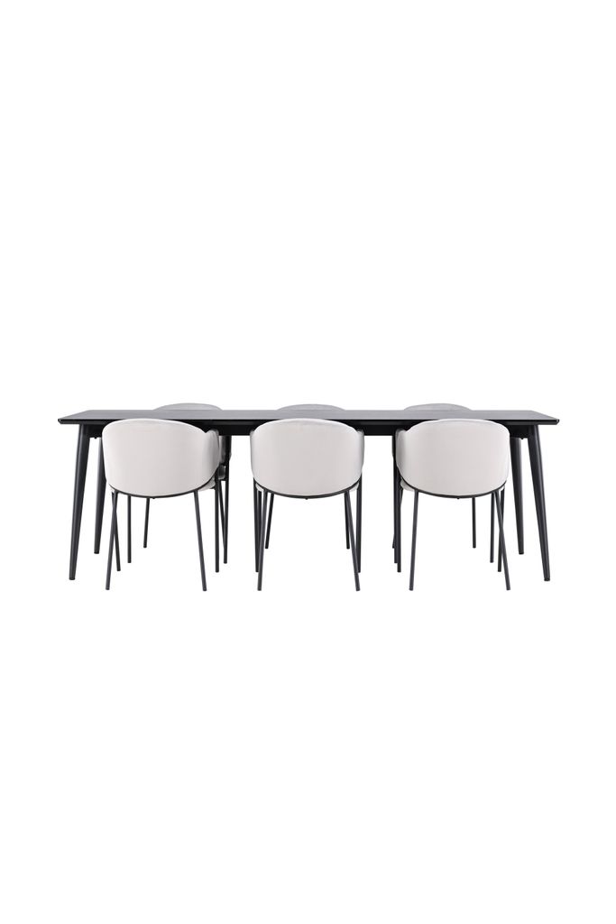 Utforska Ellis, det robusta matbordet, som med sin svarta färg ger en elegant och modern touch till ditt rum. Bordet är tillverkat med stålben och en bordsskiva i MDF-material, vilket ger en perfekt balans mellan robusthet och stil. Med generösa mått på 230x85 cm är Ellis bordet perfekt för sällskapliga middagar och samlingar med vänner och familj.