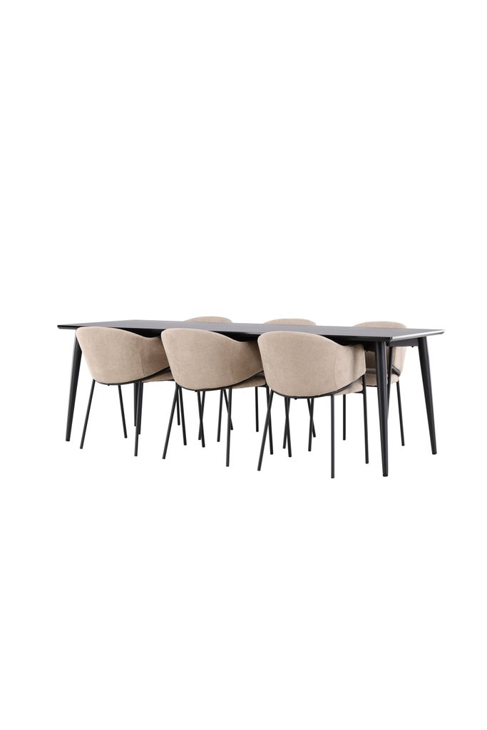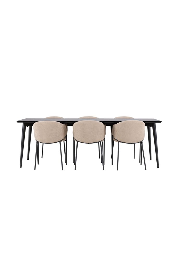 Ellis Matbord: Med en stilren design i svart finish, erbjuder Ellis matbord en stabil och robust grund för alla dina måltider. Bordet har stålben och en bordsskiva i MDF-material, vilket ger en utmärkt balans mellan hållbarhet och estetik. Med en generös storlek på 230x85 cm, är detta bord perfekt för både vardagliga middagar och större sammankomster.