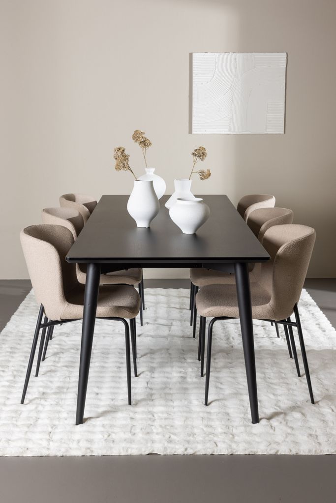 Tillsammans skapar Modesto och Ellis en inbjudande atmosfär i hemmets hjärta, där form och funktion möts. Perfekt för både små och stora middagsbjudningar, den här matgruppen är designad för att förlänga trivsamma måltider och erbjuda maximal komfort.