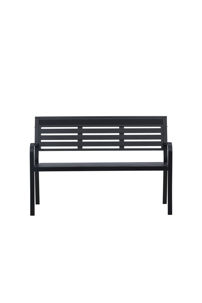 Denna bänk är tillverkad i tåligt aluminium, vilket gör den både lätt att underhålla och motståndskraftig mot väder och vind. Den eleganta svarta färgen ger ett sofistikerat intryck som smälter väl in i alla utomhusmiljöer, från moderna trädgårdar till klassiska uteplatser.