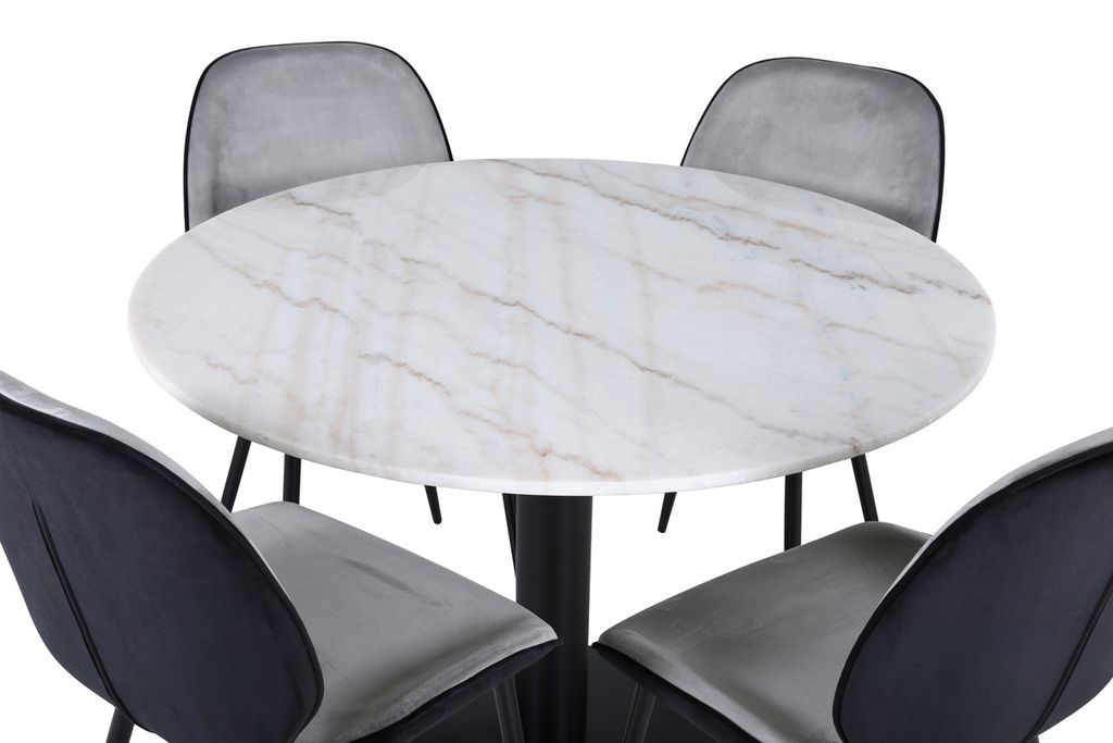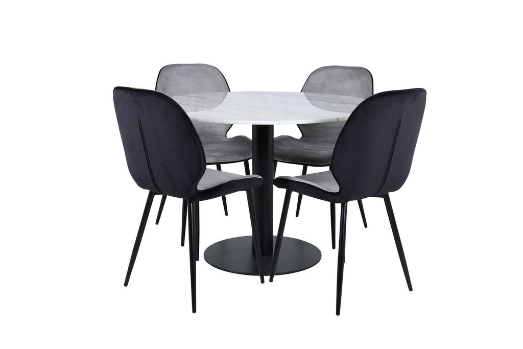 Venture Home Emma & Estelle 4 st Matstolar Grå + Runt Matbord ⌀106 Vit