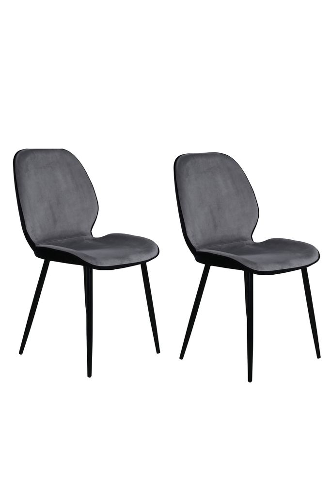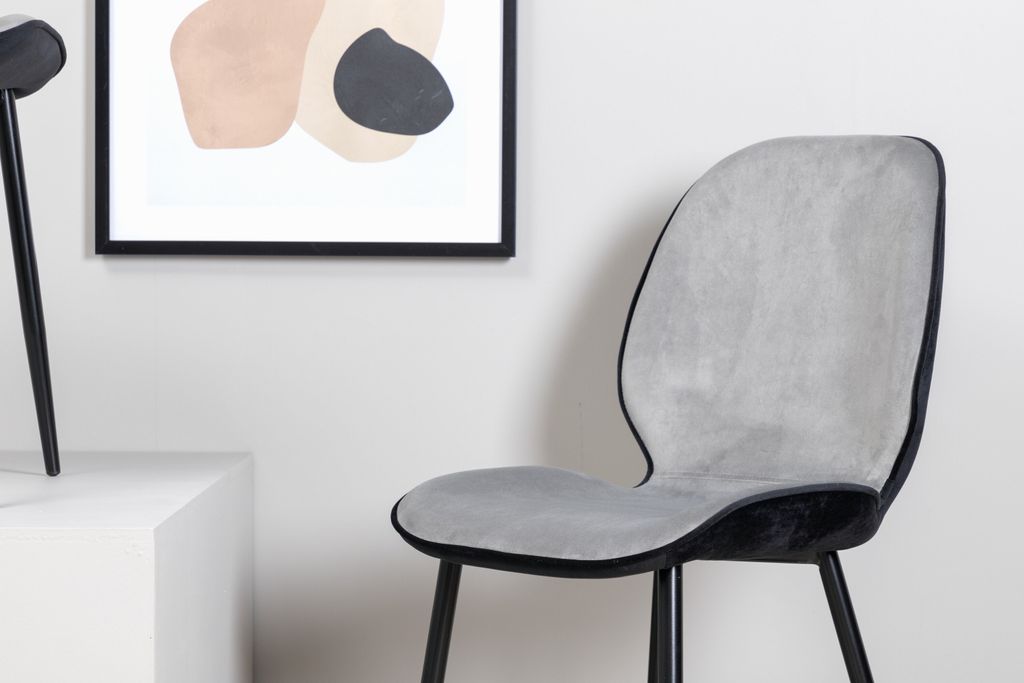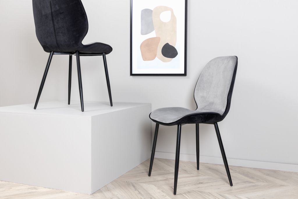 Skapa ett modernt blickfång i rummet med Emma-stolar i grå sammet och svart järn.