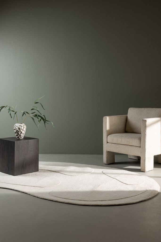 Den vita färgen och den unika ovala formen ger Enard-mattan en tidlös och modern estetik som passar in i olika inredningsstilar. Den är perfekt för att skapa en harmonisk och elegant atmosfär i både vardagsrum och sovrum.