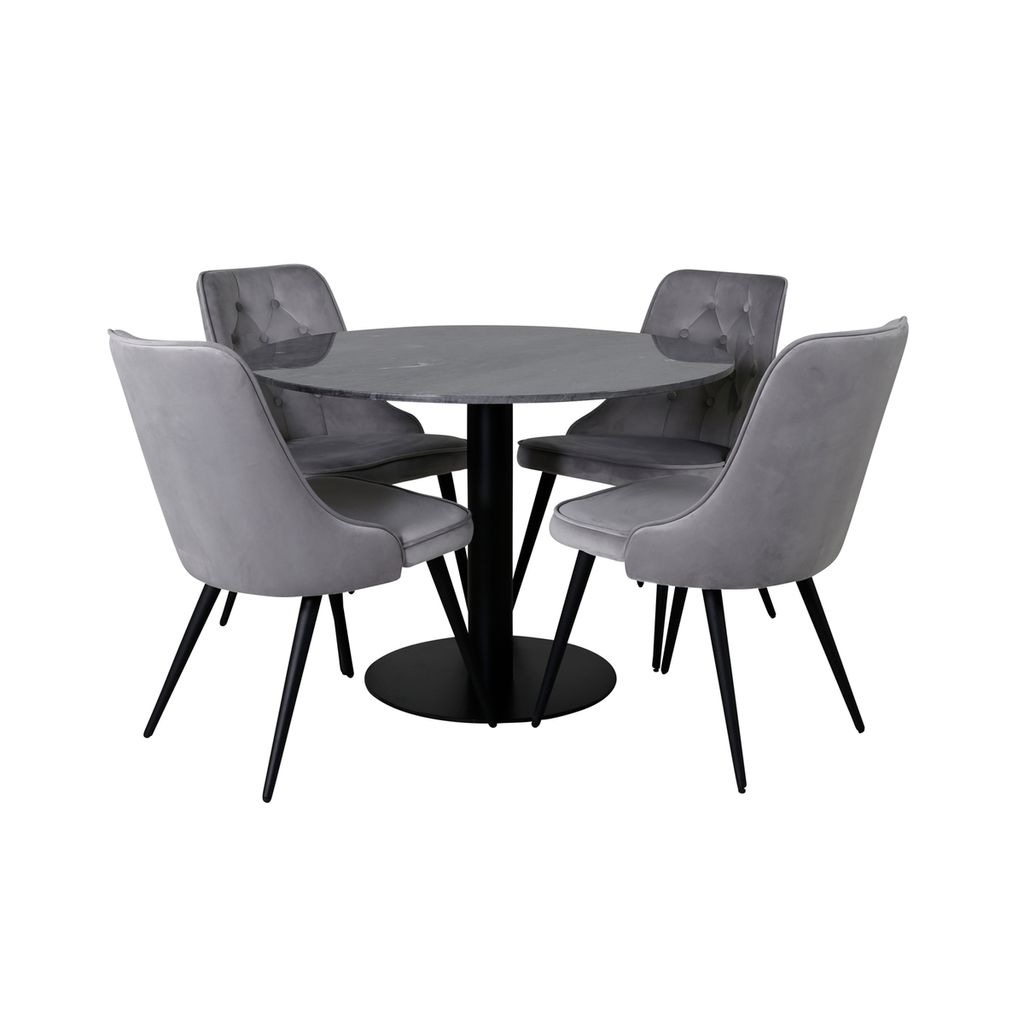 Venture Home Estelle Bord är det perfekta tillskottet till ditt hem, oavsett om det är för vardagliga måltider eller festliga tillfällen. Dess eleganta runda design och släta, blanka marmorskiva erbjuder både stil och funktionalitet. Den mörkgrå marmorskivan skapar ett sofistikerat intryck, medan det svarta metallunderredet ger stabilitet och modern elegans.