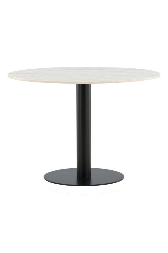 Förvandla ditt matrum med Venture Home Estelle Matbord i elegant vit marmor. Detta runda bord mäter 106 cm i diameter och har en total höjd på 75 cm, vilket gör det idealiskt för både vardagliga och festliga måltider. Bordets topp är tillverkad av vit marmor med vackra naturliga ådringar, vilket ger varje bord en unik karaktär. Metallunderredet i svart erbjuder en modern kontrast och stabilitet.