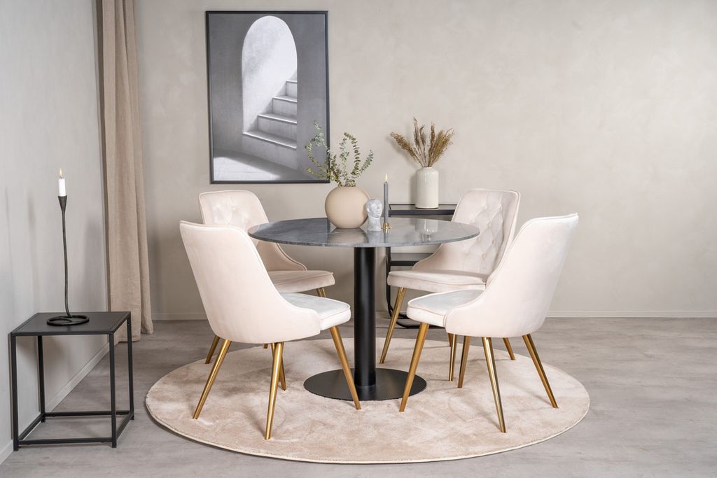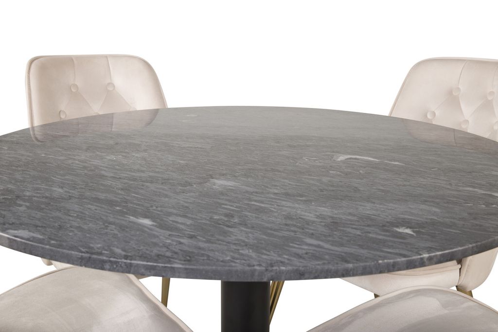 Venture Home Estelle & Velvet Deluxe Runt Matbord ⌀106 Mörkgrå + 4 st Matstolar Beige