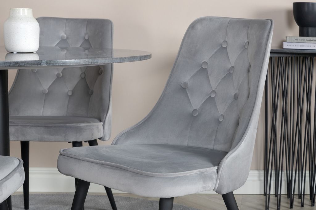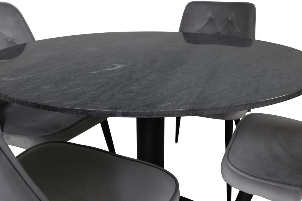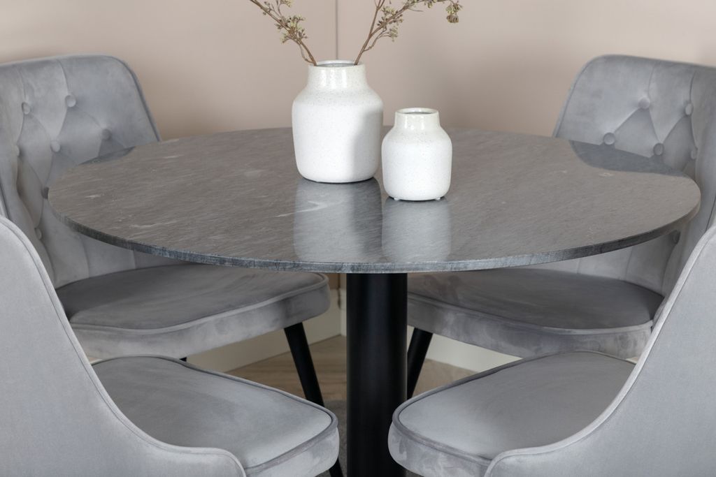Venture Home Estelle & Velvet Deluxe Runt 4 st Matbord ⌀106 Mörkgrå + Matstolar Ljusgrå