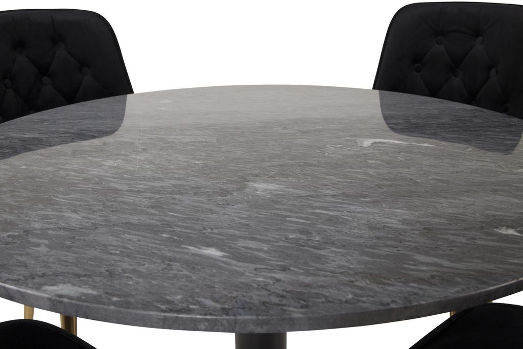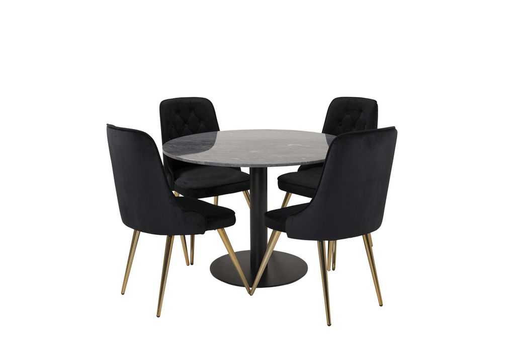 Venture Home Estelle & Velvet Deluxe Runt Matbord ⌀106 Mörkgrå + 4 st Matstolar Svart