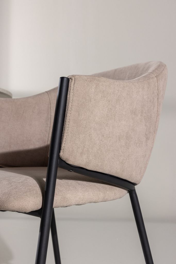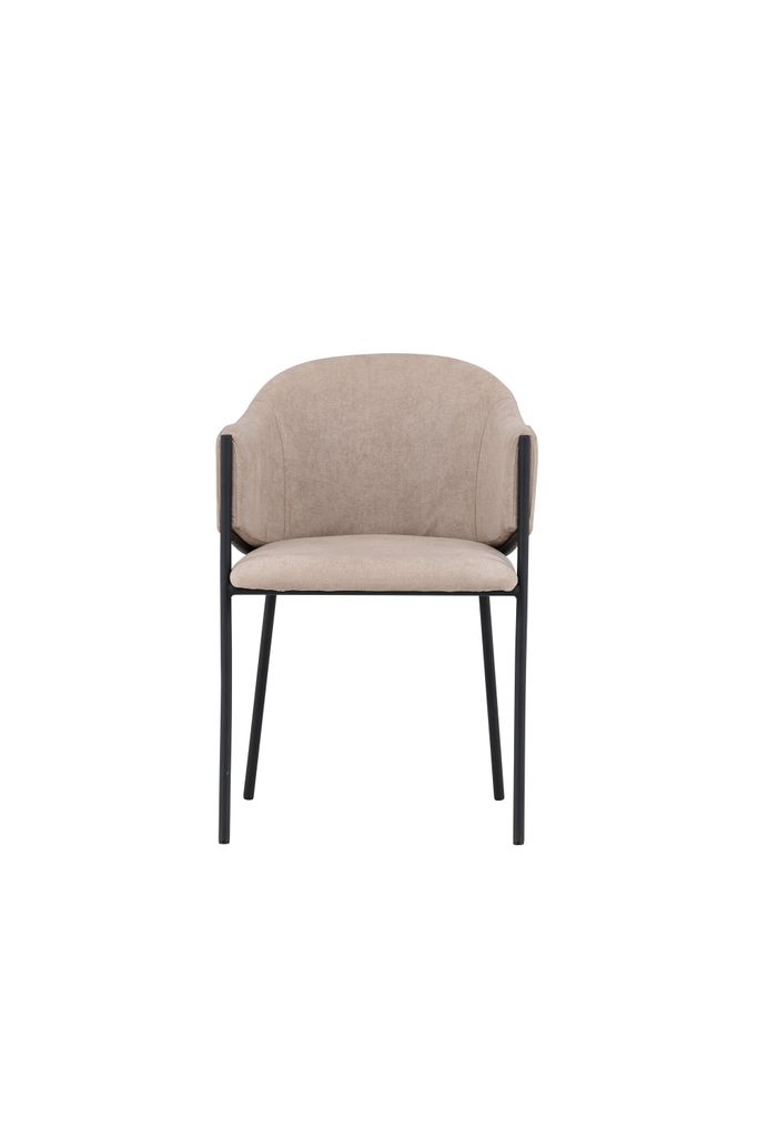 Evelina matstol erbjuder elegant och bekväm sittkomfort med mjukt beige polyester och robust stålram.