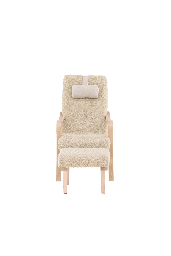 Utrustad med en matchande fotpall och en bekväm nackkudde, erbjuder Fårö optimal komfort för långa stunder av njutning. Den stilrena utformningen med böjda träarmstöd bidrar till dess eleganta utseende, medan den robusta konstruktionen säkerställer att du har glädje av denna möbel i många år.