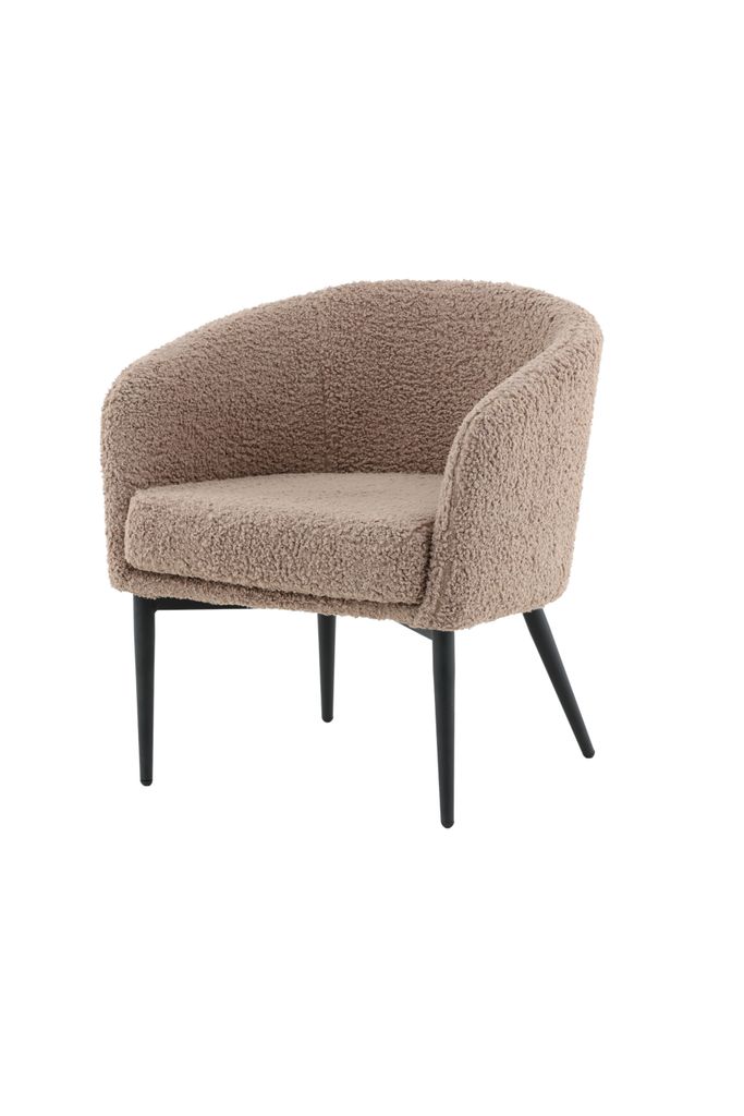 Ge ditt hem en inbjudande känsla med Venture Home Fluffy Fåtölj i brun teddy. Denna fåtölj kombinerar stil och komfort med sitt lurviga teddy-material som bjuder in till avkoppling. De runda formerna och de stilrena, utsvängda benen i svart metall ger en modern touch som passar både i grupp eller som solitär i ett sovrum.