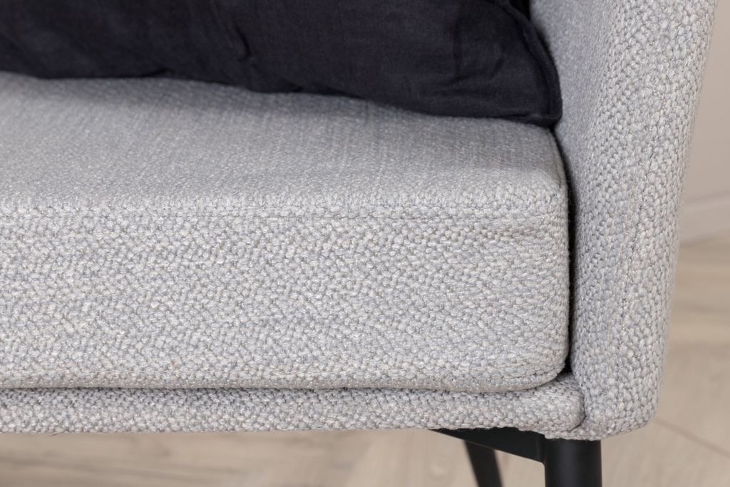 De smala benen i svart järn ger fåtöljen ett stabilt stöd och en sofistikerad look. Fåtöljen är utformad för att passa perfekt i ett vardagsrum och blir garanterat ett populärt tillskott i ditt hem.