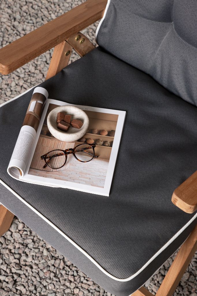 Stilren och bekväm grå stolsdyna med snören för fastsättning och extra komfort för utemöbler.