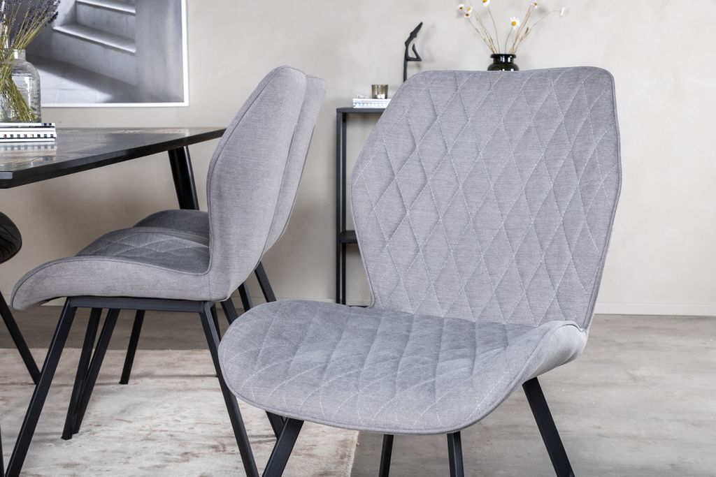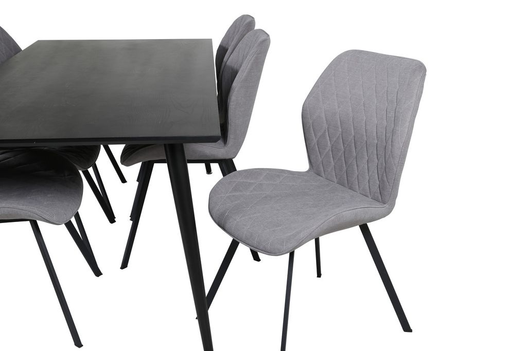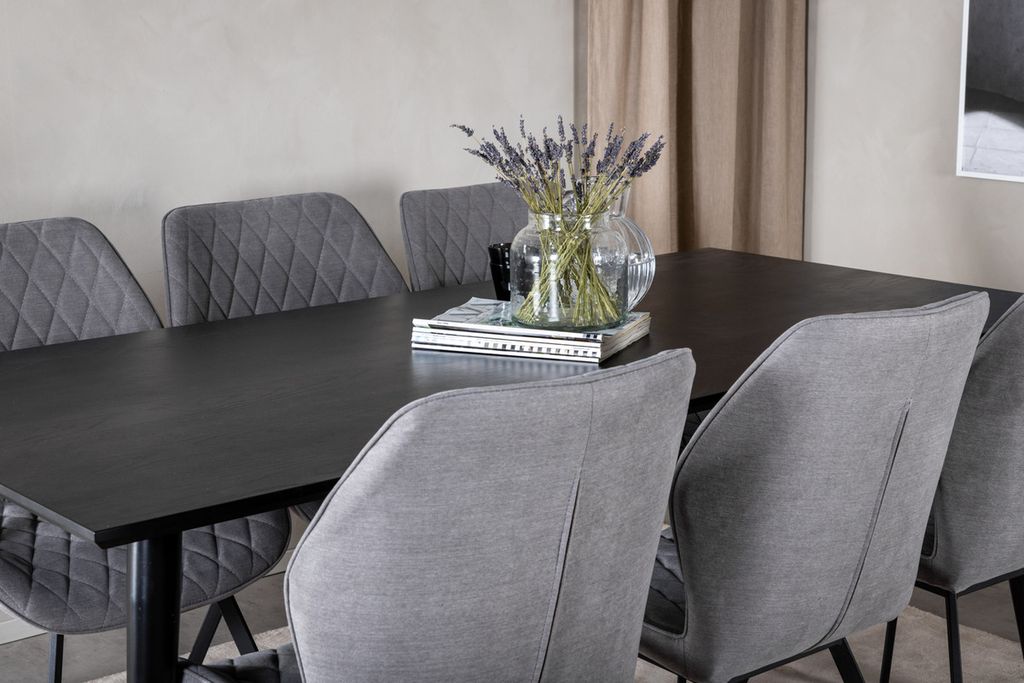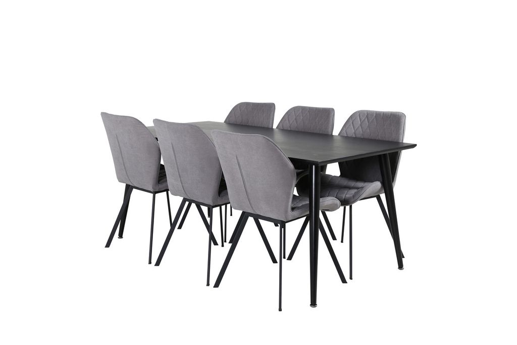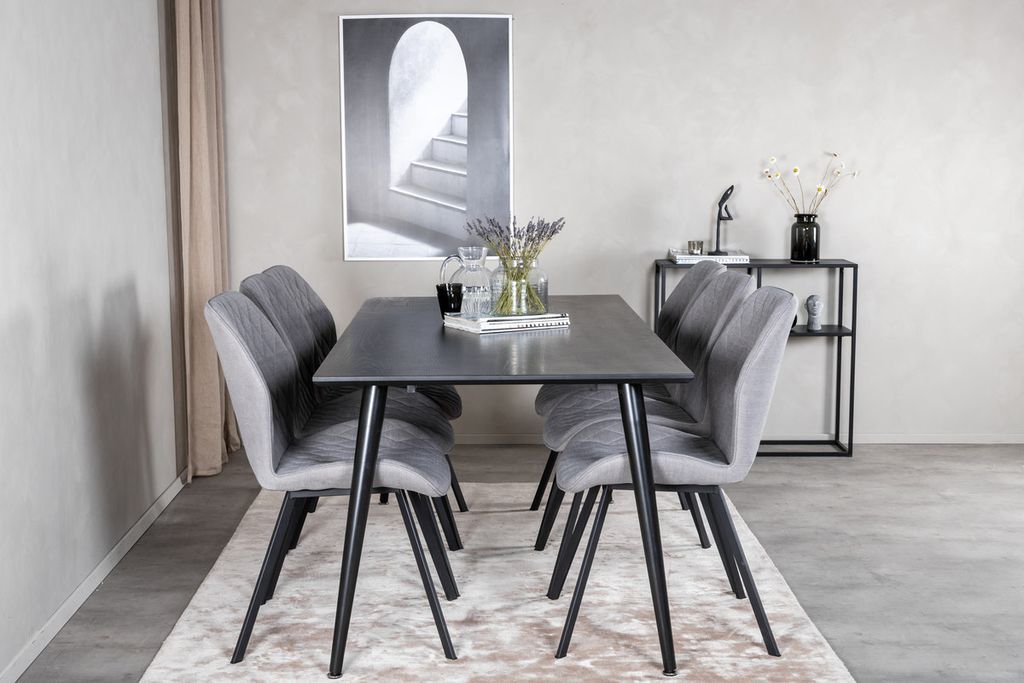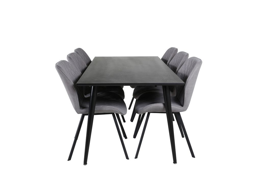 Venture Home Gemma & Dipp 6 st Matstolar Grå + Rektangulärt Matbord 180 x 90 Svart