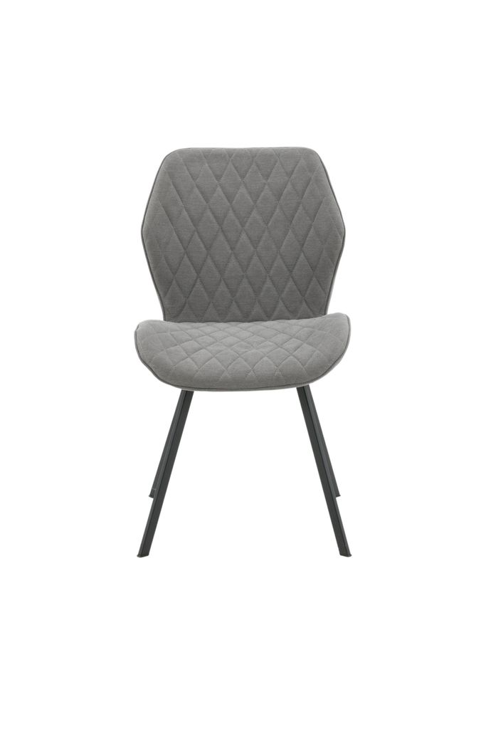 Stilren och tidlös matstol i 2-pack med exklusiv design, grått polyestertyg och svart metall.
