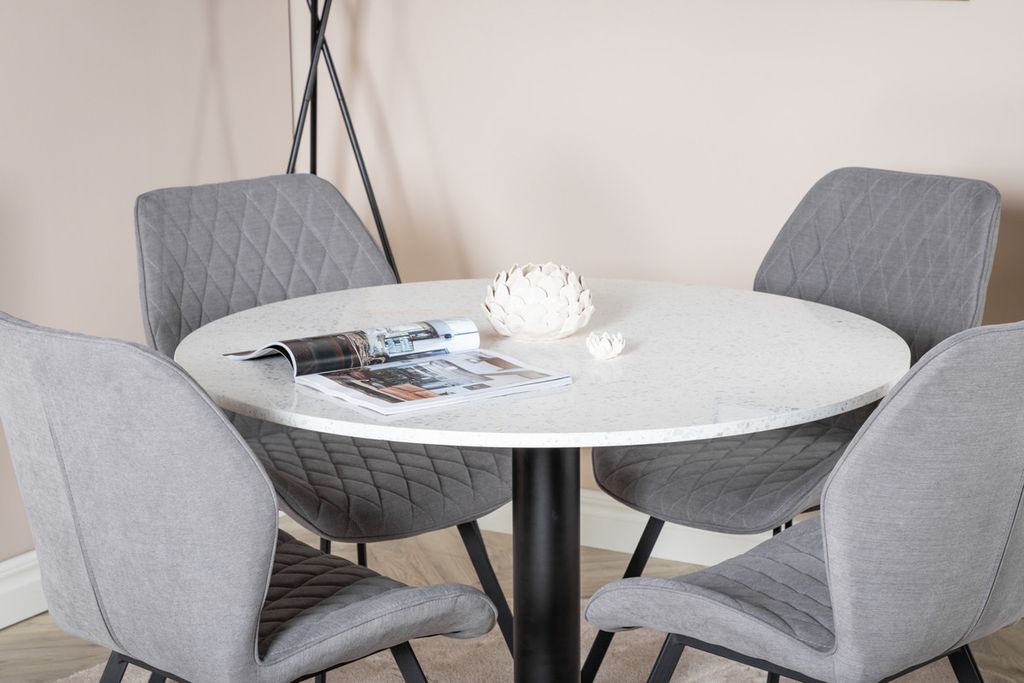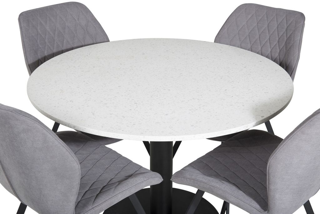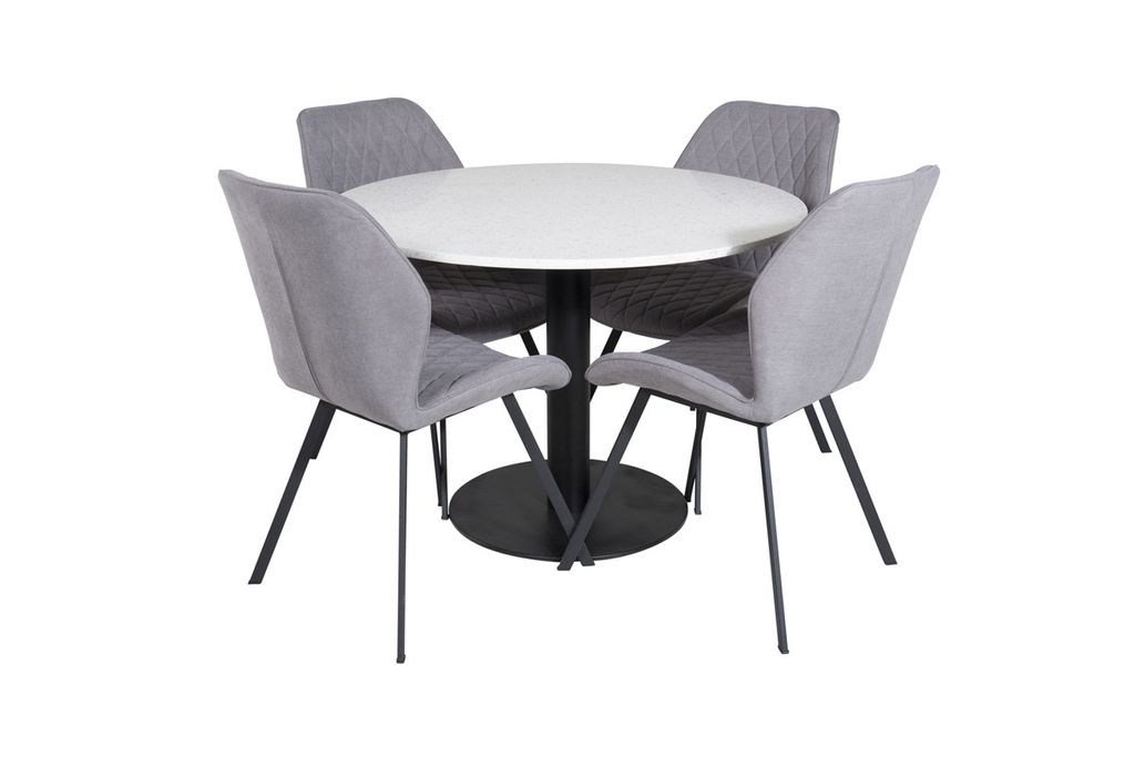 Venture Home Gemma & Razzia 4 st Matstolar Grå + Runt Matbord ⌀106 Vit