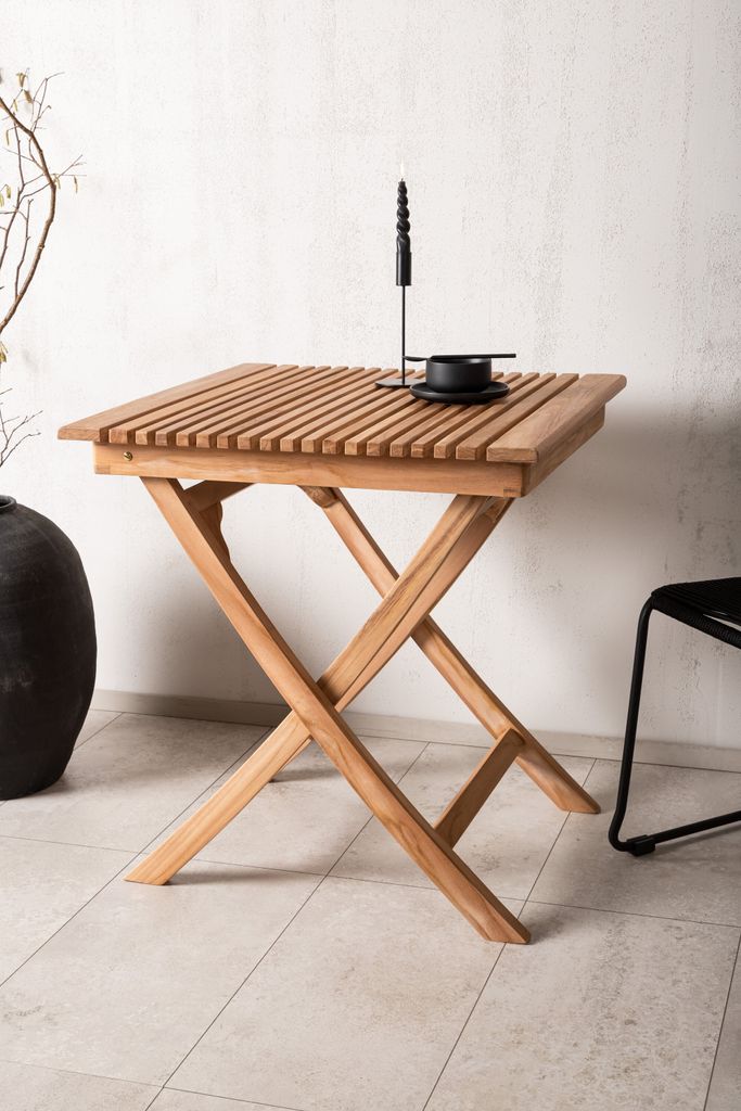 Smakfullt teakbord, hopfällbart och tidlöst. Perfekt för soliga dagar utomhus.