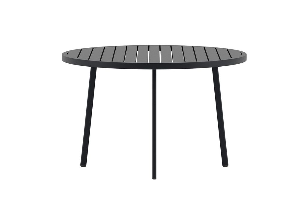 Giardini är ett runt matbord med en diameter på 120 cm, perfekt för att samla familj och vänner kring uteplatsen. Det svarta bordet har en stilren och modern design med ribbad bordsskiva som ger ett elegant uttryck. Tack vare sin generösa storlek finns gott om plats för måltider och umgänge, samtidigt som formen gör det enkelt att placera stolar runtom. Giardini är ett tidlöst bord som passar lika bra till vardags som till fest.