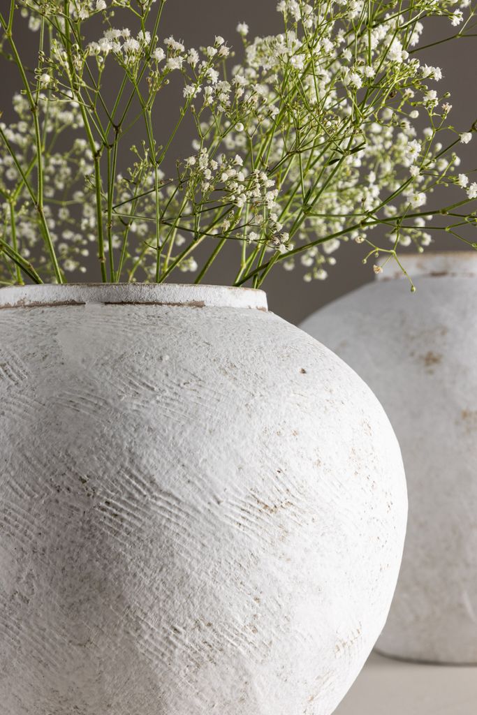 Placera Globe vasen på golvet eller på en bänk för att skapa omedelbart intryck. Dess neutralitet gör att den enkelt integreras i olika inredningsstilar, samtidigt som den tillför en lugnande och harmonisk känsla.