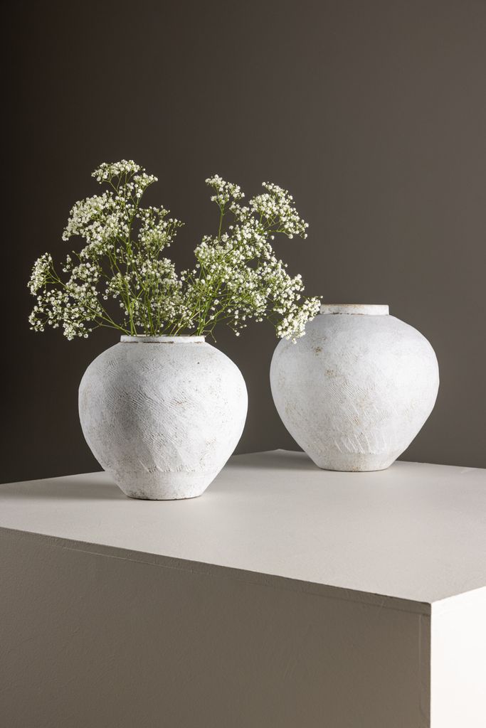 Globe vasen, tillverkad i pottery, väger 3,9 kg och kräver ingen montering. Låt denna vas vara en centralpunkt i din inredning och föra in naturens enkelhet och elegans i ditt hem. Utforska dess möjligheter och skapa en frisk och vacker atmosfär.