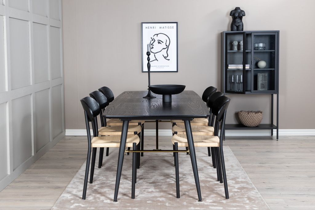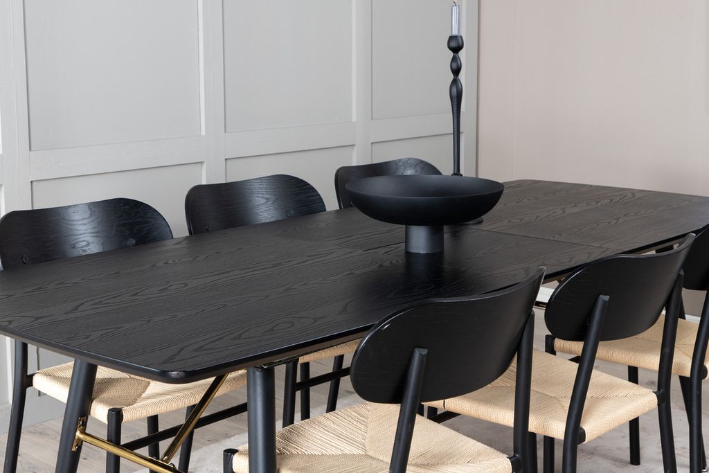 Venture Home Gold & Polly Rektangulärt Matbord 180 x 85 Svart + 6 st Matstolar Svart